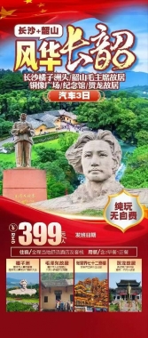 早餐后参观【毛泽东广场】。在广场集体佩戴主席像章、系上红领巾,在毛主席铜像前举行庄严肃穆的瞻仰仪式,表达对伟人的深切缅怀和敬仰之情。也可集体向毛主席铜像敬献花蓝,向伟大的共和国缔造者致敬。(韶山环保车属于必须景交,20元/人,上车交导游)