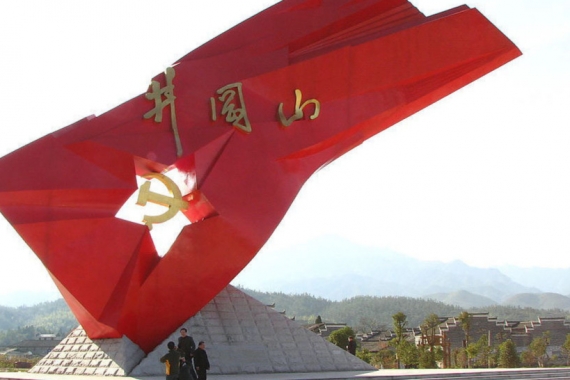 前往井冈山标志——【红旗雕塑】(约1小时)留影,游览井冈山标志性建筑【红旗雕塑】,高高飘扬的红旗中间镶嵌五角星、镰刀斧头和“井冈山”三字,熠熠生辉,光彩夺目。雄伟壮美的“井冈红旗”大型雕塑有三层寓意。一是它像一块屹立不倒的巨石,象征中华人民共和国在井冈山奠基;二是它像一团熊熊燃烧的火焰,寓意中国革命的星星之火从井冈山燎原;三是它像一面高高飘扬的旗帜,矗立在环山的平畴之上,刺向苍穹,昭示中国革命从井冈山走向胜利!