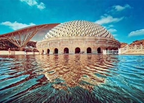 3.佛顶广场玻璃莲花:在玻璃莲花上手机贴紧地面仰拍,佛顶宫全景镜像倒影,值得收藏。