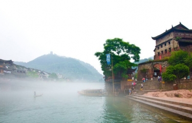 从文的著名中篇小说《边城》的原型地。沈从文先生把茶峒古镇优美的风景、淳朴菩良的风俗人情等融为一体,勾画出了田园收歌般的边城风貌。依山的筑坡茶峒,临水的码头,湾泊的小篷船,轻柔的山风,望眼无尽的翠竹,青石道整清风雅,吊脚楼古色古香,白塔耸立,古渡摆舟;垂柳下的石级上,仨俩姑嫂在捶衣洗菜,清水江上,四五渔民在放鹭鸶叼鱼,如诗如画,美轮美奂,这正是小说里描述的样子。至[清江游船](费用已含)清水江在夹岸的青山里。从南面的贵州奔涌而米,穿过这座小山城向北流去,最后汇入酉水和沅江,平日里,即便没有阳光,即便下着小雨,江水却不失秀柔,依旧泛着深深的翠意。由讧面远望茶峒,霜旧却宁静。许多故事,随着这河水,不停地流逝,不断地重复。清水江从崇山峻岭中浩淼而出,不时有船只往来于江上,出没于深谷逶迤之中。泛舟清水江上,两岸树木葱茏。江面白雾茫茫,江水碧波荡漾,几只小船在江中游弋,轻快惬意,说不出的自在,说不出的向往。